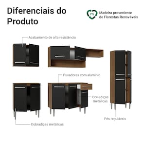 O acabamento da cozinha combina os tons amadeirado Rustic e preto. O processo é feito em Pintura Poliéster ecológica com 7 camadas que protegem contra os efeitos da água e do calor.