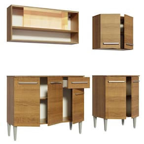 Itens inclusos: - Um (1) Armário aéreo com duas (2) portas de correr de vidro reflex e um (1) nicho - Um (1) Armário aéreo com duas (2) portas - Um (1) Balcão com duas (2) portas e tampo - Um (1) Balcão com três (3) portas, uma (1) gaveta e tampo