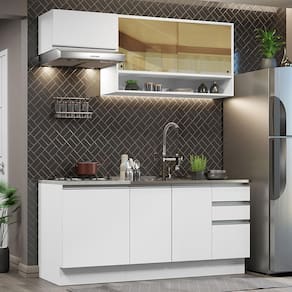 Cozinha Completa Madesa Glamy 180008 com Armário e Balcão (Sem Tampo e Pia) - Branco