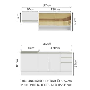 - 52 cm de profundidade nos balcões e 31 cm nos aéreos