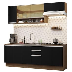 O acabamento da estrutura é no padrão amadeirado Rustic e as portas e frentes são pretas. Feito em Pintura Poliéster ecológica, com aplicação de 7 camadas de proteção resistentes a álcool, água e calor.