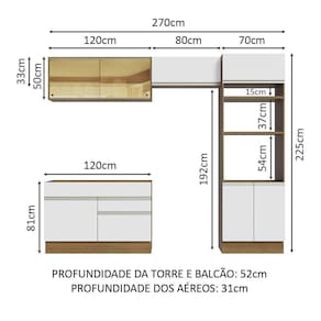 - 52 cm de profundidade no balcão e na torre e 31 cm nos aéreos