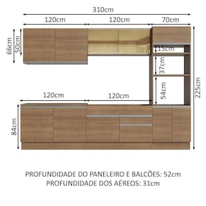 - 52 cm nos módulos inferiores e 31 cm nos aéreos