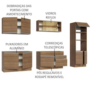 Composta por vários módulos separados, possui ótimo espaço disponível. Assim, você terá muito espaço para organizar todos os seus utensílios, pratos e mantimentos, deixando seu ambiente mais funcional e prático.