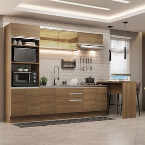 Composta por vários módulos separados, se torna praticamente uma cozinha planejada para o seu ambiente. Um dos grandes diferenciais desta versão é a bancada, que aumenta o espaço útil da cozinha e pode ser usada no dia a dia tanto para organizar itens ou para refeições rápidas.