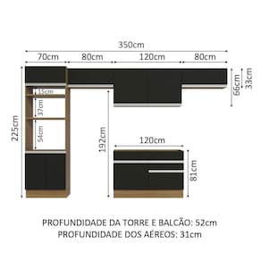 - 52 cm nos módulos inferiores e 31 cm nos aéreos