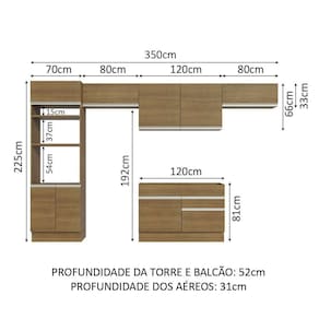 - 52 cm nos módulos inferiores e 31 cm nos aéreos