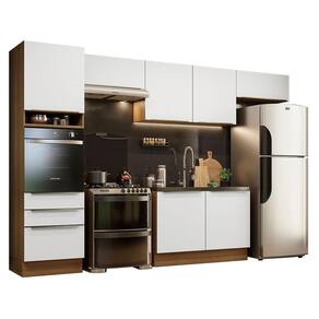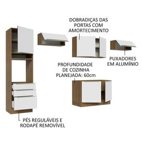 A cozinha é totalmente modulada e possui profundidade de cozinha planejada: 60 cm. A fabricação é feita com itens de qualidade superior, que conferem durabilidade e maior vida útil ao móvel.