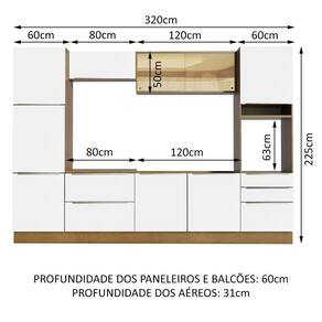 - 60 cm de profundidade nos módulos inferiores e 31 cm nos aéreos