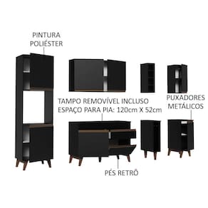 Fabricada com materiais de alto padrão, como corrediças e dobradiças metálicas e puxadores embutidos em alumínio, esta versão lembra uma cozinha planejada: conta com sete módulos avulsos, que podem ser dispostos conforme a necessidade do seu ambiente.