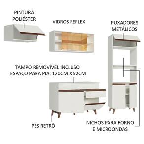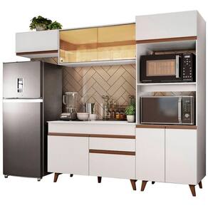Tem espaço pra organizar tudo: panelas, louça, mantimentos, eletroportáteis e o que mais você preferir. A torre quente oferece espaço para a colocação de forno elétrico e micro-ondas.
