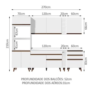 - 52 cm de profundidade nos balcões e na torre e 31 cm nos aéreos
