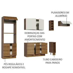 Tem espaço pra tudo neste modelo: forno, micro-ondas, garrafas, louças, eletros, panos e o que mais você imaginar. É a escolha perfeita para deixar a cozinha muito mais organizada e funcional.