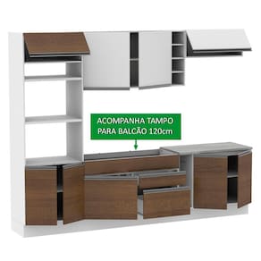 Possui também pés reguláveis e rodapé removível. Para completar, com opção de aéreos na cor crema com detalhe em vidro reflex conferindo elegância ao ambiente.
