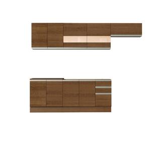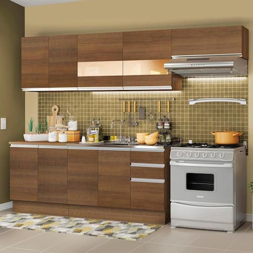 - Itens inclusos: Um balcão de 80 cm com duas portas e tampo | Um aéreo de 80 cm com duas portas | Um balcão de pia de 120 cm de largura com duas portas e três gavetas, sendo uma maior (não acompanha o tampo deste balcão) | Um aéreo de 120 cm com duas portas com detalhe em vidro reflex | Um aéreo de 80 cm com uma porta basculante