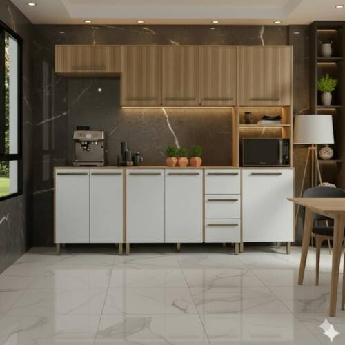 A Cozinha Completa Madine Marina 10 Portas busca agregar charme e elegância a sua cozinha, permitindo que você armazene de forma harmoniosa, utensílios domésticos e até mesmo objetos decorativos para tornar sua cozinha cada vez mais aconchegante e moderna. Balcão Madine Marina é um verdadeiro charme para sua cozinha, com um toque de sofisticação e simplicidade ele possui 2 portas com amplo espaço interno e 3 gavetas para acomodar seus utensílios domésticos e alimentos.