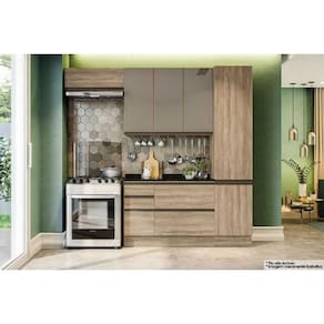 Cozinha Completa Maxxi (2 Aéreos + 1 Balcão + 1 Paneleiro + 1 Complemento) 5 Peças CZ245 Nogal - Kappesberg