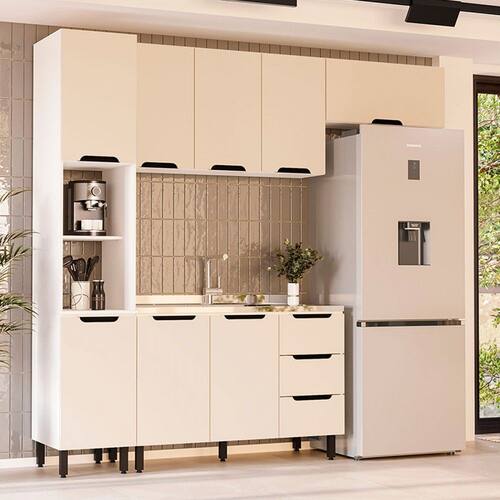 O(a) Cozinha Completa Meena 8 Portas 3 Gavetas 40250054 Branco/Creme - Politorno é produzido em MDF e MDP na escala de brilho Semi-Fosco, e possui um grau de dificuldade de montagem: Médio.