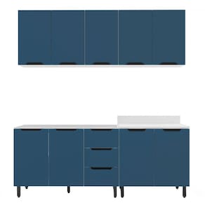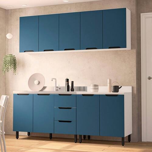 O(a) Cozinha Completa Meena 9 Portas 3 Gavetas 40250053 Branco/Azul - Politorno é produzido em MDF e MDP na escala de brilho Semi-Fosco, e possui um grau de dificuldade de montagem: Médio.