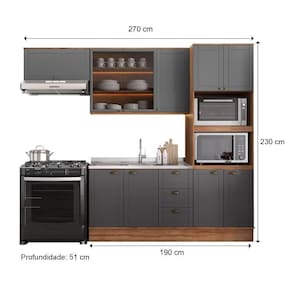 Nome: Cozinha Completa Milla Daisy Armário e Balcão Nog/Cinza Carraro