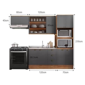 Conteúdo da Embalagem: 1 Cozinha Completa Milla Daisy Armário e Balcão Nog/Cinza Carraro