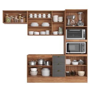 A Cozinha Bella Daisy foi feita para trazer praticidade e funcionalidade ao seu dia a dia. Esta composição foi desenvolvida pensando em atender às necessidades de todos usuários, unindo praticidade com estilo. Seu design inspirado nas cozinhas clássicas estilo americano possui detalhes usinados nas frentes, deixando qualquer ambiente mais bonito. Com acabamento em MDF e BP, dobradiças com amortecimento e puxadores metálicos em fortmato ponto e concha, na cor ouro velho, proporciona um acabamento de alta qualidade.