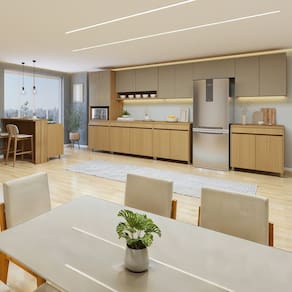 Imagine ter uma cozinha completa que combina beleza, inteligência e praticidade em cada detalhe: feita 100% em MDF, ela conta com uma ilha funcional perfeita para refeições rápidas e apoio no preparo dos alimentos, além de pés com regulagem de altura que garantem firmeza e fácil adaptação. Com fundo antimofo e portas canelas, ela traz um design sofisticado e versátil para transformar seu ambiente em um espaço aconchegante e cheio de estilo.