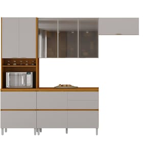 em MDF 1,5cm, ela oferece um acabamento de alto padrão e durabilidade excepcional. O design moderno inclui puxadores embutidos que conferem um visual impecável, portas chanfradas que adicionam um toque de requinte, e gavetões espaçosos que facilitam a organização dos utensílios. Vidro temperado na cor reflecta. Mais sofisticação para o ambiente. Tampo de 2,5 cm resistente a altas temperaturas, até 120ºC. Corrediças telescópicas de 3 estágios. Dobradiças com tecnologia Slow Motion e para as portas horizontais pistão a gás para abrir suave Acabamento da Prateleira: Pintura Escala de Brilho da Prateleira: Semi-Brilho Acabamento da Gaveta: Pintura Escala de Brilho da Gaveta: Semi-Brilho Acabamento da Porta: Pintura Escala de Brilho da Porta: Semi-Brilho Material do Puxador da Porta: Alumínio Acompanha Rodapé Decorativo: Não Acompanha Tampo: Sim Altura dos Pés: 14,5 cm Altura Máxima dos Pés: 14.5000 Ambiente Principal: Cozinha Balcão Suporta Pia: Sim codigo_ean: 7900288193704 Complexidade da Montagem: Alta: deve ser montado por um montador especializado Cor: Cinamomo/Cinza Cor do Produto: Cinamomo/Cinza Cor Interna: Cinamomo Escala de Brilho: Semi-Brilho Espessura do Material da Estrutura: 15 mm Espessura do Tampo: 25 mm Gaveta com Chave: Não Itens Inclusos: 1 Cozinha Completa, Kit Ferragens e Manual de Montagem Linha ou Coleção: Lumina Manual de Especificação Técnica: https://product-hub-prd.madeiramadeira.com.br/145546787/documents/851eb139-4e11-4b3c-a95a-6a09bdb5f1833055524267917519205318742.pdf Manual de Montagem e Instalação: https://product-hub-prd.madeiramadeira.com.br/145546787/documents/7fddafad-4f98-4719-997c-191467dbf85b3055523267917519205270821.pdf Marca: Itatiaia Material da Corrediça: Metálica Material da Dobradiça/Corrediça da Porta: Metálica Material da Gaveta: MDF Material da Porta: MDF Material da Prateleira: MDF Material do Fundo: HDF Material do Tampo: MDF Material dos Pés: Plástico Medida de cada item (A x L x P): Paneleiro (230x70x53,5), Armário 3p (80x120x31), Armário 1p (33,8x80x31), Balcão 120 (90x120x53) medias em centimetros modular: Sim Necessita Montagem: Sim O Balcão Acompanha Pia: Não Origem do Produto: Nacional Pés Reguláveis: Sim Peso: 161 kg Peso Máximo por Gaveta: 5 kg Peso Máximo por Prateleira: 12 kg Possui Pés: 09 Possui Portas: Sim Possui Prateleiras: Sim Possui recorte para Cooktop: Não Possui Rodízio: Não Possui Vidro: Sim Produto Montado: Sim Recomendações de Uso, Manutenção e Limpeza: Limpeza com Pano Úmido Sapatas Niveladoras: Sim Sistema de Montagem: Parafuso e Cavilha Suporta Até (kg): 180 kg Tamanho Indicado da Pia: 120x53cm Tipo de Corrediça da Gaveta: Metálica Telescópica Tipo de Dobradiça da Porta: 35 mm Tipo de Dobradiça/Corrediça da Porta: 35 mm Tipo de Puxador da Gaveta: Embutido Tipo de Puxador da Porta: Externo
