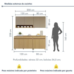 Os balcões suportam eletrodomésticos? Sim, são resistentes para micro-ondas, cafeteira e outros itens. Acabamento da Prateleira: Impressão Escala de Brilho da Prateleira: Semi-Brilho Acabamento da Gaveta: Impressão Escala de Brilho da Gaveta: Semi-Brilho Acabamento da Porta: Impressão Escala de Brilho da Porta: Semi-Brilho Acabamento dos Pés: Pintura Acompanha Rodapé Decorativo: Não Acompanha Tampo: Sim Altura dos Pés: 10 cm Altura Máxima dos Pés: 10.0000 Ambiente Principal: Cozinha Balcão Suporta Pia: Não codigo_ean: 7900288238009 Complexidade da Montagem: Alta: deve ser montado por um montador especializado Cor: Marrom Cor do Produto: Marrom Cor Interna: Carvalho/Greige Escala de Brilho: Semi-Brilho Espessura do Tampo: 30 mm Gaveta com Chave: Não Informações Complementares: Tampo 30mm; dobradiça 35mm e conforto tecnológico slow motion; Fundo dos armários de Duratree,produto super-resistente e anti-mofo. Itens Inclusos: 1 Cozinha Completa, Kit Ferragens e Manual de Montagem Manual de Montagem e Instalação: https://product-hub-prd.madeiramadeira.com.br/932699339/documents/7180d2be-70ac-4280-99d6-106b1153bd1031826677321756984136243.pdf Marca: Nesher Móveis Material da Corrediça: Metálica Material da Dobradiça/Corrediça da Porta: Metálica Material da Gaveta: MDF Material da Porta: MDF Material da Prateleira: MDF Material do Fundo: Duratree Material do Tampo: MDF Material dos Pés: ABS Medida de cada item (A x L x P): Aéreo 2 : 80cmx80cmx32; Aéreo Nicho: 80cmx120cmx32; Balcão 80: 91cmx80cmx54,5; Balcão 120: 91cmx120cmx54,5 modular: Sim Montagem Flex: Não Necessita Montagem: Sim O Balcão Acompanha Pia: Não Origem do Produto: Nacional Pés Reguláveis: Sim Peso: 152 kg Peso Máximo por Gaveta: 5 kg Peso Máximo por Prateleira: 10 kg Possui Pés: 09 Possui Portas: Sim Possui Prateleiras: Sim Possui recorte para Cooktop: Não Possui Rodízio: Não Possui Vidro: Não Produto Montado: Sim Recomendações de Uso, Manutenção e Limpeza: Utilizar pano macio levemente umedecido e na sequencia pano macio seco. Sapatas Niveladoras: Sim Sistema de Montagem: Parafusos e Cavilhas Tamanho Indicado da Pia: . Tipo de Corrediça da Gaveta: Metálica Telescópica Tipo de Dobradiça da Porta: 35 mm Tipo de Dobradiça/Corrediça da Porta: 35 mm Tipo de Puxador da Gaveta: Embutido Tipo de Puxador da Porta: Embutido Marca: Não Informado