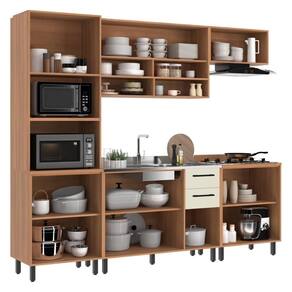 Imagine um produto que se adapta ao seu estilo e às suas necessidades: é a Cozinha Completa Modulada 5 Peças com Gabinete para Pia Havana Multimóveis CR20317. É composta por 5 módulos individuais que oferecem liberdade total para dispor do jeito que melhor se encaixarem no ambiente. Produzida em MDP (15mm/tampos 25mm) com acabamento acetinado (cerca de 20% de brilho), garante durabilidade e resistência. Com amplo espaço interno, possui 11 portas, incluindo 2 basculantes, e 2 gavetas com corrediças telescópicas, que proporcionam um manuseio suave e silencioso. Conta com espaço dedicado para forno, micro-ondas e utensílios mais altos, além de balcão para cooktop (NÃO possui recorte). O balcão de 120cm NÃO acompanha tampo ( com pia de 120cm). Para conferir elegância e estabilidade aos módulos, esta linda cozinha acompanha puxadores e pés em PVC com regulagem de altura.