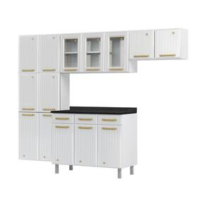 Conteúdo da Embalagem: 1 (um) Paneleiro Suspenso 70cm 1 (um) Armário Aéreo 70cm 1 (um) Armário Aéreo 105cm 1 (um) Balcão com Tampo 105cm Kit Ferragem Manual de Montagem