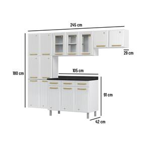 Dimensões do Produto Montado: Altura: 180cm | Largura: 245cm | Profundidade: 42cm (Balcão) - 29cm (Armários) *Você pode consultar as medidas detalhadas na imagem técnica do produto.
