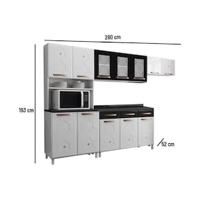Cozinha - Altura: 193cm | Largura: 280cm | Profundidade: 52cm (Balcão) - 29cm (Armários)