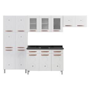 Conteúdo da Embalagem: 1 (um) Paneleiro 80cm 1 (um) Armário Aéreo 80cm 1 (um) Armário Aéreo 120cm 1 (um) Balcão sem Tampo 120cm Kit Ferragem Manual de Montagem