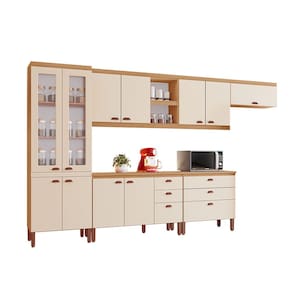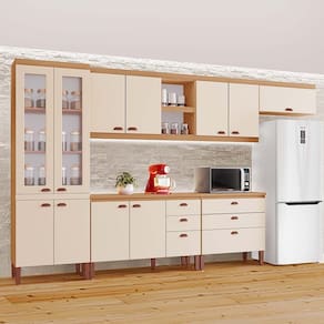 MDFApresentamos a Cozinha Ágata New! A cozinha Ágata New destaca-se pela excelente divisão interna, que maximiza a organização e funcionalidade. A pintura touch confere um acabamento moderno e elegante. Os puxadores ponto e concha na cor cobre adicionam um toque sofisticado ao design. As corrediças telescópicas e o divisor de talheres garantem praticidade e eficiência no uso diário. Não perca tempo e adquira já a sua!