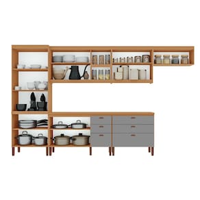 Apresentamos a Cozinha Ágata New! A cozinha Ágata New destaca-se pela excelente divisão interna, que maximiza a organização e funcionalidade. A pintura touch confere um acabamento moderno e elegante. Os puxadores ponto e concha na cor cobre adicionam um toque sofisticado ao design. As corrediças telescópicas e o divisor de talheres garantem praticidade e eficiência no uso diário. Não perca tempo e adquira já a sua!
