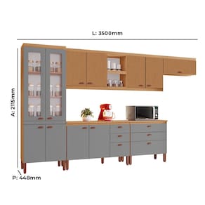 Cozinha Completa Modulada Tuboarte Ágata 100% MDF com 2 Balcões 11 Portas e 6 Gavetas - Grafite