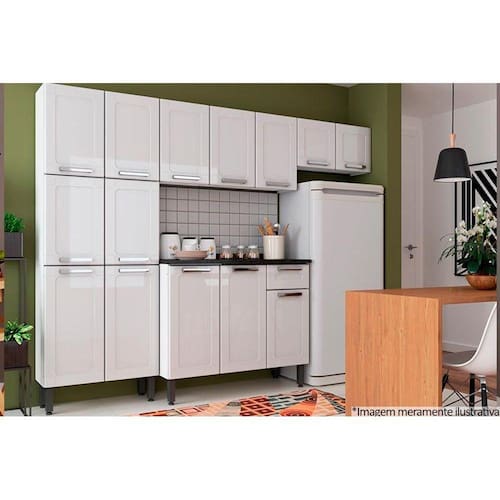 Abaixo segue os produtos do KIT: Cozinha Completa Múltipla 4 Peças (2 Armários + 1 Balcão + 1 Paneleiro) C4P74 Branco - Bertolini