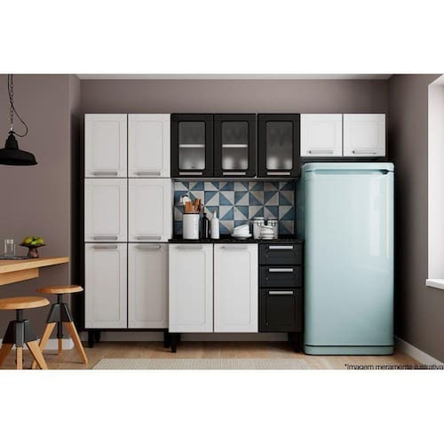 Cozinha Completa Múltipla 4 Peças (2 Armários + 1 Balcão + 1 Paneleiro) C4P77 Branco/Preto - Bertolini