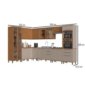 O(a) Cozinha Completa Munique 16 Portas 7 Gavetas com Vidro Freijó/Camurça - Indékes é produzido em MDP na escala de brilho Fosco, e possui um grau de dificuldade de montagem: Médio.