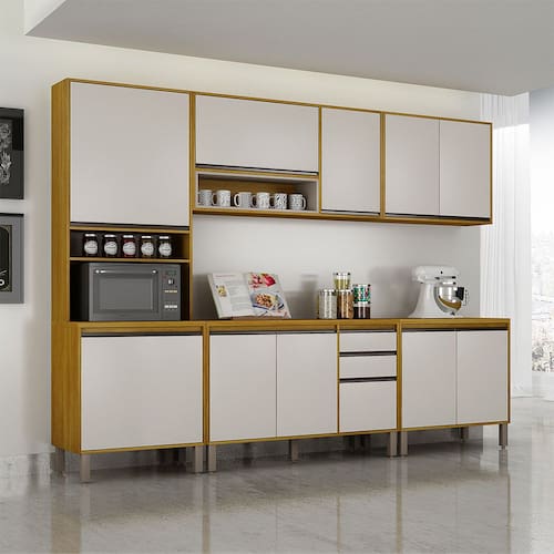 A Cozinha Completa 5 Peças 11 Portas 2 Gavetas Nala foi pensada para transformar sua cozinha em um ambiente prático e funcional, perfeito para quem ama cozinhar. Composta pelo Armário Porta Condimento, Armário 2 Portas, Balcão 3 Portas, Balcão 2 Portas e Paneleiro 2 Portas, oferece amplo espaço para armazenar todos os seus utensílios de cozinha, como panelas, talheres, pratos, copos, temperos e eletrodomésticos. O design inteligente facilita o acesso rápido aos itens essenciais enquanto você prepara suas refeições, deixando tudo organizado e à mão, para que o tempo na cozinha seja mais produtivo e agradável.