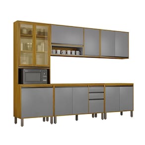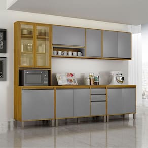 Cozinha Completa Nala Cristaleira 5 Pçs12 Portas Mobilihouse Cinamomo/cinza Acetinado A Cozinha Completa com Cristaleira 5 Pecas 12 Portas Nala e a escolha perfeita para quem busca funcionalidade, sofisticacao e organizacao na cozinha. Composta pelo Armario Porta Condimento, Armario 2 Portas, Balcao 3 Portas, Balcao 2 Portas e o elegante Paneleiro Cristaleira 2 Portas, este conjunto oferece amplo espaco para armazenar panelas, utensilios, mantimentos, cristais e loucas de forma pratica e acessivel. O nicho decorativo no paneleiro traz um toque de charme, enquanto otimiza o uso do espaco. Com seu design moderno, proporciona uma cozinha bem organizada e cheia de estilo, tornando o ambiente ainda mais agradavel para preparar suas refeicoes com eficiencia e praticidade. Caracteristicas: Marca: Mobilihouse Modelo: Nala Portas: 12 Ambiente: Cozinha Estilo: Moderno Numero de pecas: 5