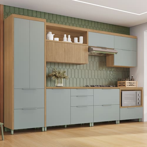 Design elegante e funcional A Cozinha Completa Nesher Marquesa é a escolha perfeita para quem busca elegância e funcionalidade em um único conjunto. Composta por 7 peças, ela inclui um paneleiro, três armários aéreos, sendo um deles com porta canelada e pistão a gás, e três balcões. Um dos balcões apresenta porta basculante e outro dispõe de uma divisória para micro-ondas, com dimensões de 42 x 74 x 51 cm (AxLxP). O acabamento fosco e os pés fixos conferem uma estética moderna e robustez ao conjunto, garantindo que cada detalhe contribua para uma cozinha estilosa e prática.