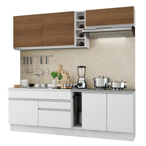 - Itens inclusos: Um Balcão de Pia com duas gavetas e uma porta (Não acompanha tampo deste balcão) | Um Porta-Panos com tampo em MDP | Um Balcão com duas portas e tampo em MDP | Um Armário Aéreo com duas portas | Um Armário Aéreo com uma porta basculante | Uma Adega