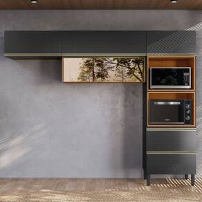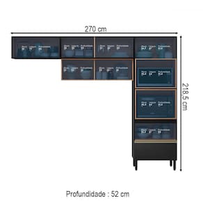 O(a) Cozinha Completa Proença 5 Portas 1 Gaveta com Vidro Nogueira/Carbono Prime Tx - Demobile é produzido em MDF e Vidro na escala de brilho Fosca com Textura, e possui um grau de dificuldade de montagem: Difícil.