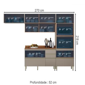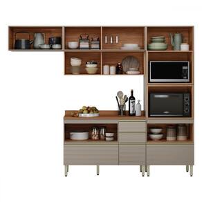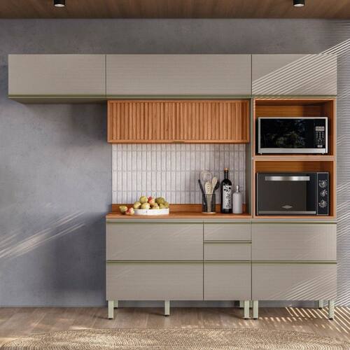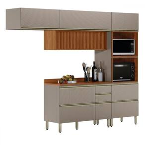 Cozinha Completa Proença 6 Portas 5 Gavetas Ripado 100% Mdf Dp2704rp Nogueira/Nude - Demobile - Cozinha Completa Demobile Proença 6 Portas