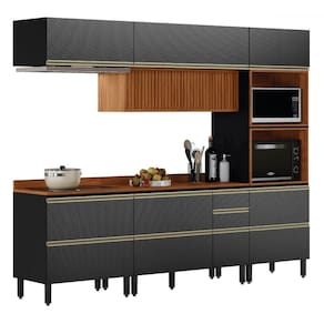 O(a) Cozinha Completa Proença 7 Portas 6 Gavetas Nogueira/Carbono Prime Tx Dp270 - Demobile é produzido em MDF na escala de brilho Fosca com Textura, e possui um grau de dificuldade de montagem: Difícil.