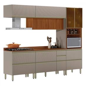 O(a) Cozinha Completa Proença 7 Portas 7 Gavetas Ripado com Vidro Dp2705rp Nogueira/Nude Prime Tx - Demóbile é produzido em MDF e Vidro na escala de brilho Fosca com Textura, e possui um grau de dificuldade de montagem: Difícil.