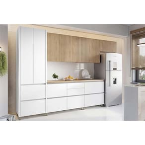 Cozinha Completa Rainha 6 Peças (3Aéreos+2Balcões+1Paneleiro) C6P89 Nature/Branco - Nesher - Blush