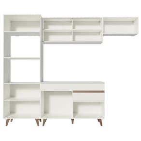 Para completar, os módulos são avulsos, o que permite a montagem conforme a necessidade do ambiente. Além disso, o balcão acompanha tampo, que pode ser removido para colocação de pia com espaço de 120 x 52 cm.